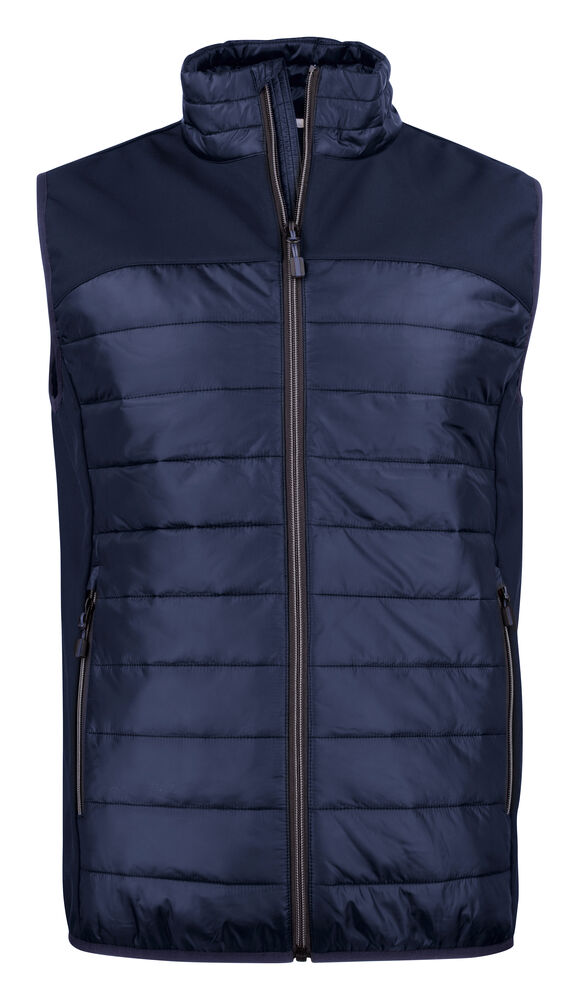 Detailled descriptionSoftshell / lightweight vest. Yoke, side panels front & back of softshell (fabric 1). Body (front & back) of padded lightweight quality (fabric 2).