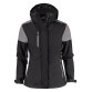 Bicoloured, padded softshell jacket with detachable hood. Zipper cover with press buttons in centre front. Adjustable Velcro-straps at bottom sleeves and elastic cord at hood and bottom seam. Two zipped inner pockets. Reflective piping at lower back. Tear-out neck label and separate size label. Laundry chip pocket at inner left side seam. Zipper pullers in contrast colour. Replacement zipper pullers sold separately. Oeko-Tex 100 certified.