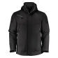 Padded soft shell with detachable hood, pre-curved sleeves, drawstring at bottom hem and Velcro adjustment at bottom sleeves. Front pockets and chest pocket with zippers, 2 inner pockets with zippers and one mesh pocket.