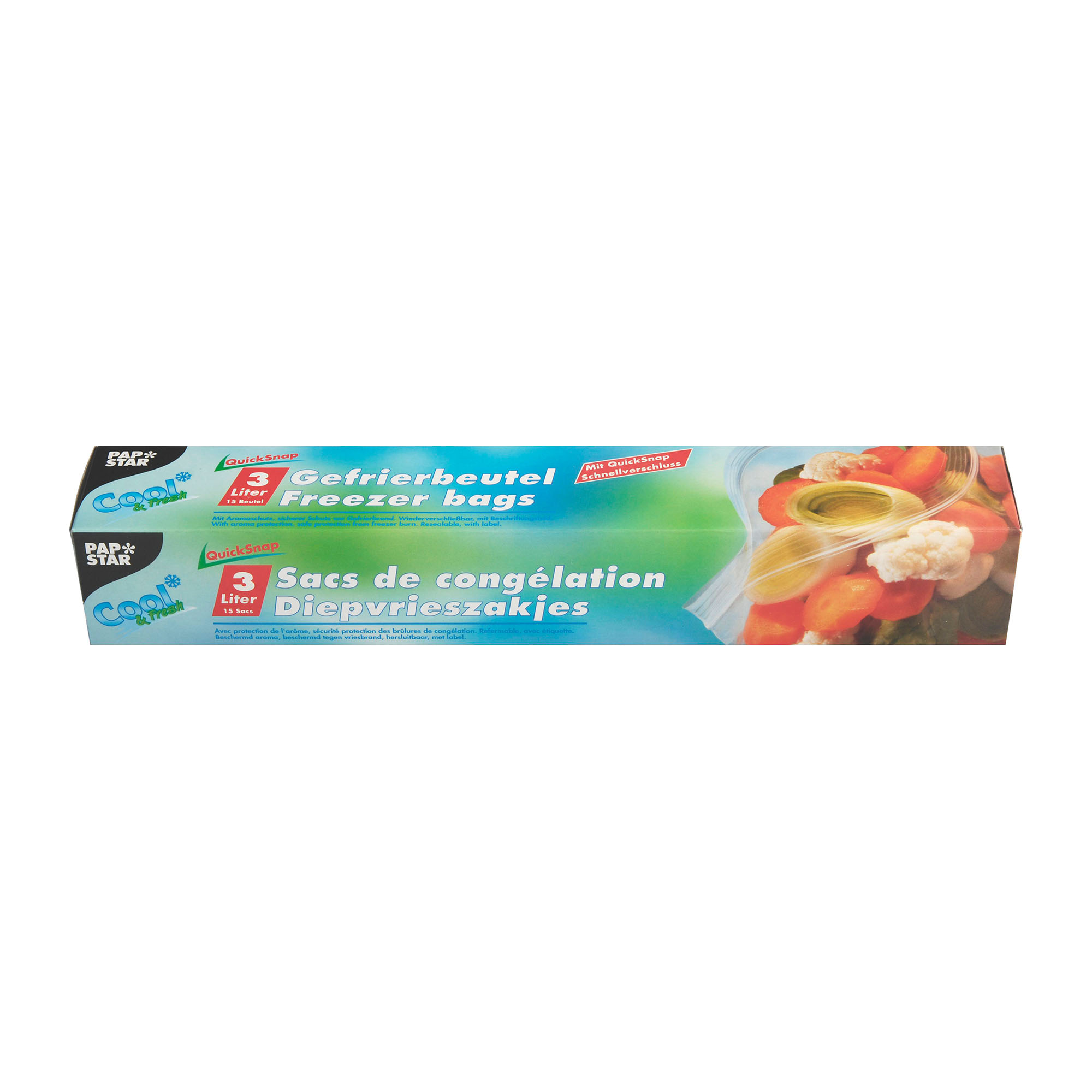 Detailled descriptionQuickSnap freezer bag, 3 L, resealable:made of LLDPE (Low Density Polyethylene)with flavor preservertear resistantwith an inscription fieldroll in a dispensing box.Also available in 1 liter under reference 774803.