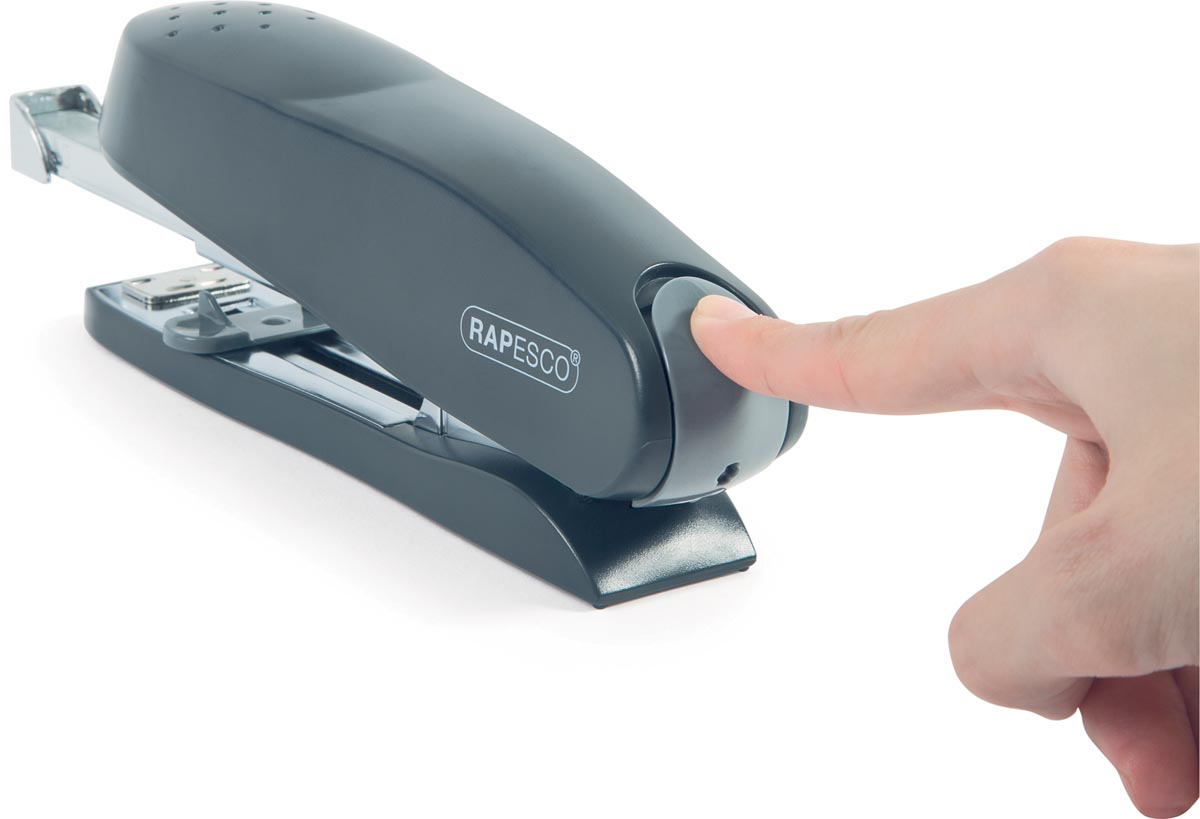 L'Agrafeuse Spinna de Rapseco est une agrafeuse grande capacité avec chargement frontal. Son chargeur d'agrafes coulissant avec chargement frontal vous permet de recharger cette agrafeuse en appuyant simplement sur un bouton. Fabriqué à partir de pièces métalliques de haute qualité. Elle comporte un taquet d'alignement pour un positionnement conforme des agrafes. Pour les agrafes Rapesco 26/6-8 mm en 24/6-8 mm. Profondeur d'agrafage: 74 mm. Capacité: 50 feuilles. Couleur: gris.