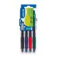 This refillable pen is sold in a pack of 4 pieces in assorted ink colors (red, black, green, blue).