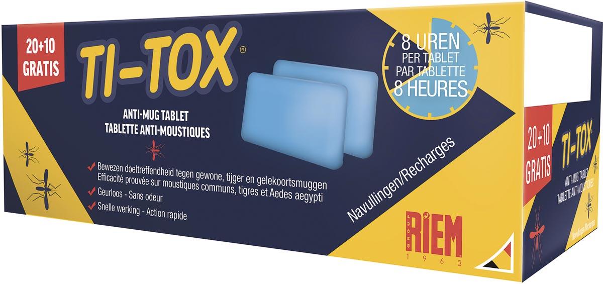 Detailled descriptionPas en vente aux Pays-Bas Protection de 8 à 10 h Convient pour le diffuseur Ti-Tox (réf. R046) Date d'expiratin: 5 ans après la production Paquet de 30 pièces (20 + 10 GRATUIT)