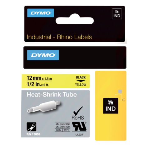 Vous recherchez une solution permanente et sans adhésif pour identifier et protéger vos câbles? * Les gaines thermorétractables Rhino de DYMO (gaines en polyoléfine thermorétractables) permettent un marquage propre et permanent pour une large gamme de diamètres de câbles Conformes aux normes MIL-M-81531, MIL-STD-202G et SAE-DTL-23053/5 (Classe 1 et 3) Approuvé par l'UL dans le cadre de la norme UL 224 et conforme à la directive RoHS Les gaines thermorétractables vous permettent de marquer les câbles La longueur du ruban est de 1,5m Une gaine rétractable de 12mm peut être utilisée pour des câbles d'un diamètre minimum de 2,97mm et d'un diamètre maximum de 5,13mm La couleur de la gaine thermorétractable est jaune, l'impression est noire.
