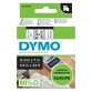 Possibilité de le décoller sans laisser de résidus adhésifs. Largeur 6 mm, longueur 7 m. Écriture noire. Compatible avec les titreuses Dymo : LABELPOINT 200, 250, 300, 350 // LABELMANAGER 160, 210D, 220P, 260P, 280, 360D, 400, 420P, 450, 450D, 500TS, PnP, PC, 1000 +, 2000, 5500 // LABELWRITER 400 DUO, 450 DUO. Ce produit est écoresponsable car il a été fabriqué à base de 60 % minimum de matériau recyclé (cassette externe recyclé à 100 % et ruban recyclé à 60 %).