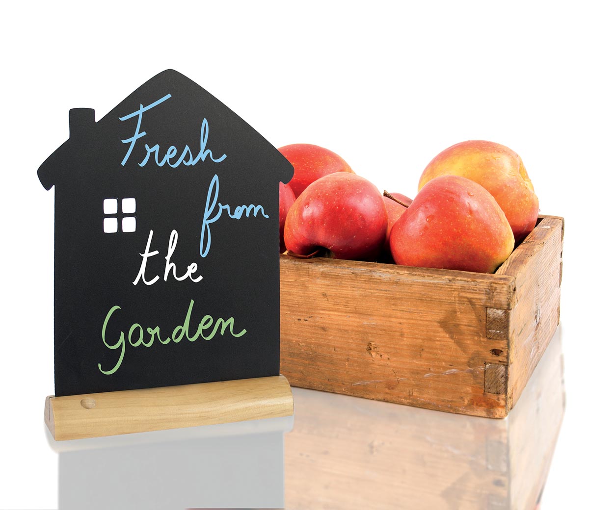 Le tableau noir à double face inscriptible offre un espace d'écriture généreux pour y inscrire vos messages, notes ou informations. L'ardoise de table SILHOUETTE 'Maison' est livrée avec un feutre-craie blanc inclus, pour vous permettre de commencer à l'utiliser dès réception.