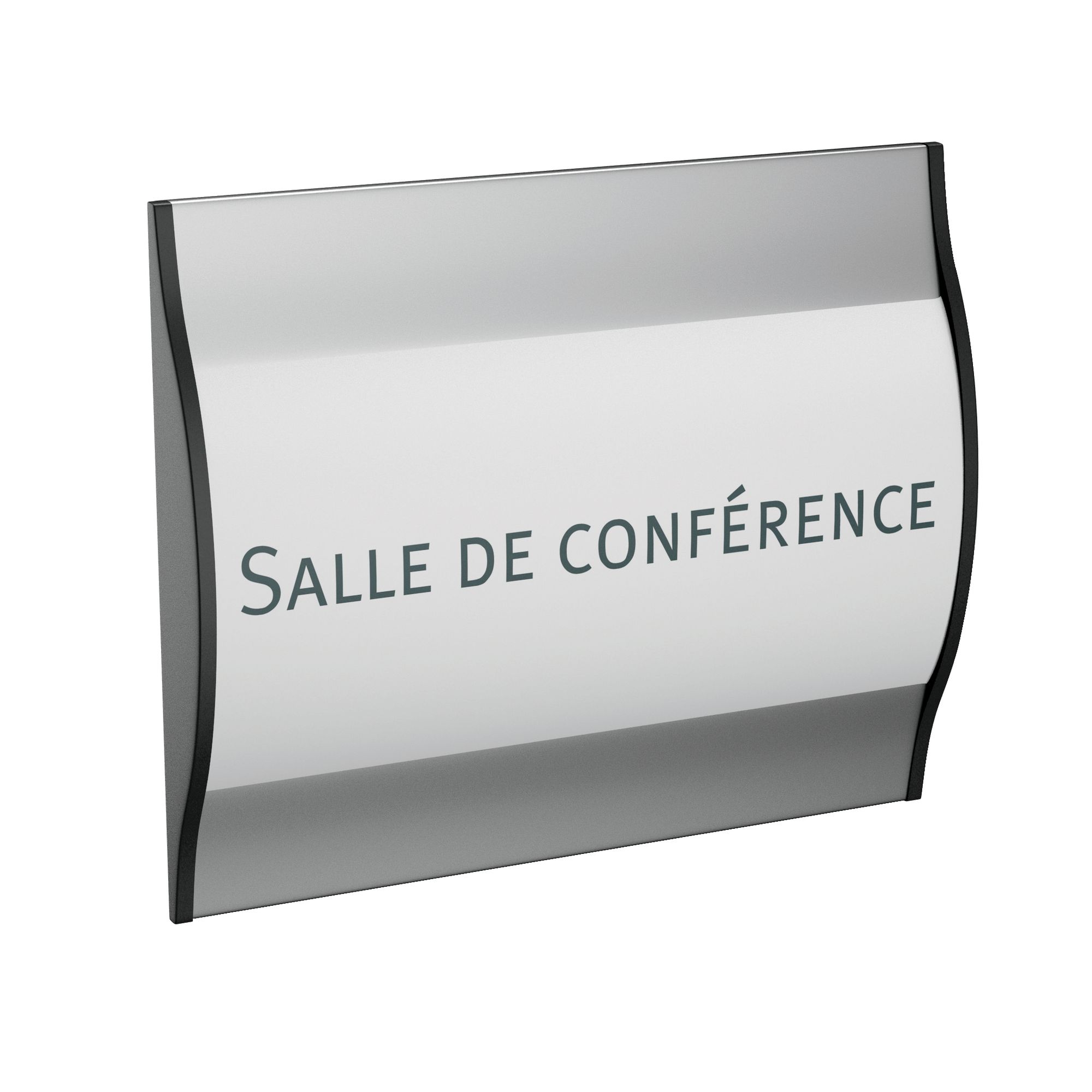 Anodised aluminium and methylacrylate1) small door signFor documents size 2.8 x 12 cm, self adhesive attachment includedDimensions: H 3.2 x L 12.4 x 1 cm thick2) standard door signfor documents up to size 10 x 21 cmscrews includeddimensions H 15 x 21.6 x 1.7 cm thick3) flagfor documents size 10.5 x 21 cmscrews includeddimensions: H 17.5 x L 24 x 5 cm thickdoor signs, wall signs, name signs