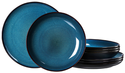 Detailled descriptionEn grès, avec émail réactif, lavable au lave-vaisselle,set composé de: 4 assiettes plates, 4 assiettes creuses