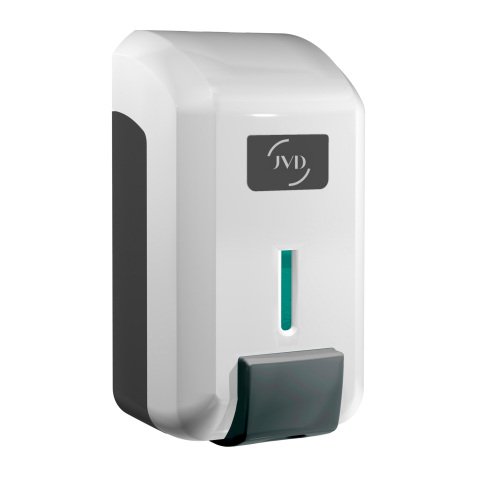 In accordance with the HACCP-standards (food contact). Capacity 800 ml (2000 doses). Little consumption thanks to the predetermined doses. Lock with key (included). Adjustable reservoir. Level of soap is visible. Cover can be moved up and down, which makes refills a lot easier. Completely in plastic, ABS white and black. Delivered with screws for attachment to the wall. Dimensions : H 20,6 x W 11 x D 10,6 cm.