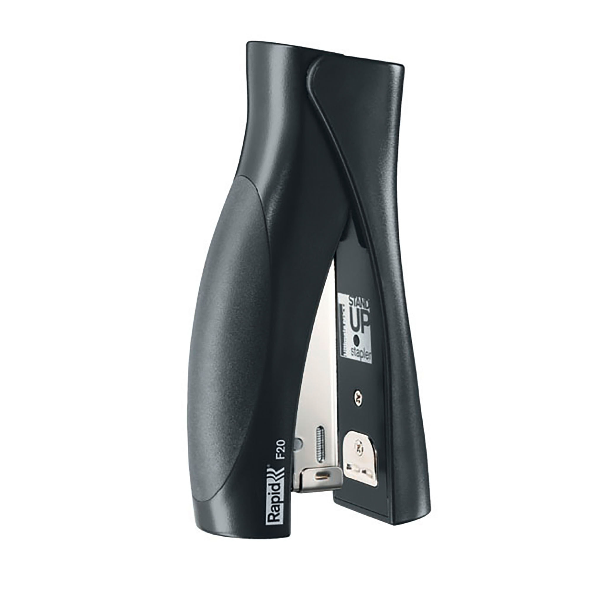 Staple simply and effortlessly with the Stand Up Rapid Fashion Ultimate NXT stapler. Its design is ergonomic and its vertical position provides a comfortable grip and easy stapling. Use it in the office, at home, or at school to staple up to 20 sheets of paper (80 g/m²). Its anvil is adjustable to allow you to staple your documents. Made of steel and with a rubber handle, it is sturdy for daily use. Easily reload your stapler from the top with Strong Rapid staples 24/6 and 26/6 for optimal performance. Its 50 mm insertion depth is ideal for all your tasks.