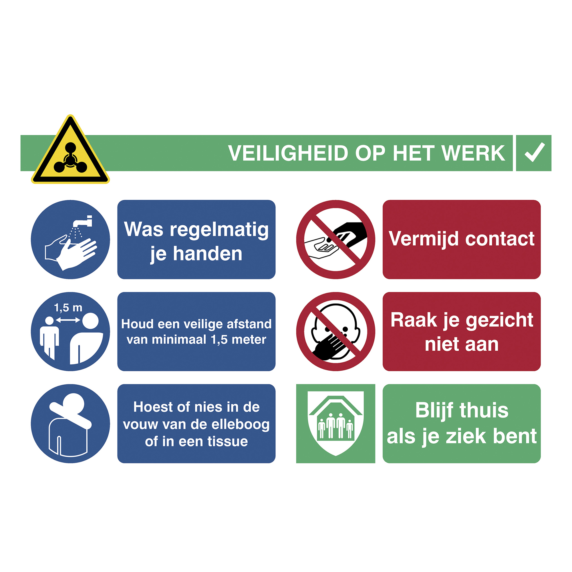 Other popular products in this categorySticker A3 with instructions for washing hands (Dutch)from€20.25 ex VATSticker A3 with instructions for washing hands (French)from€20.25 ex VATStickers A3 with instructions for stores (Dutch)from€20.25 ex VATSticker A3 safety at work (Dutch)from€20.25 ex VATSticker A3 safety at work (French)from€20.25 ex VATSticker A3 safety at work (French)from€20.25 ex VAT