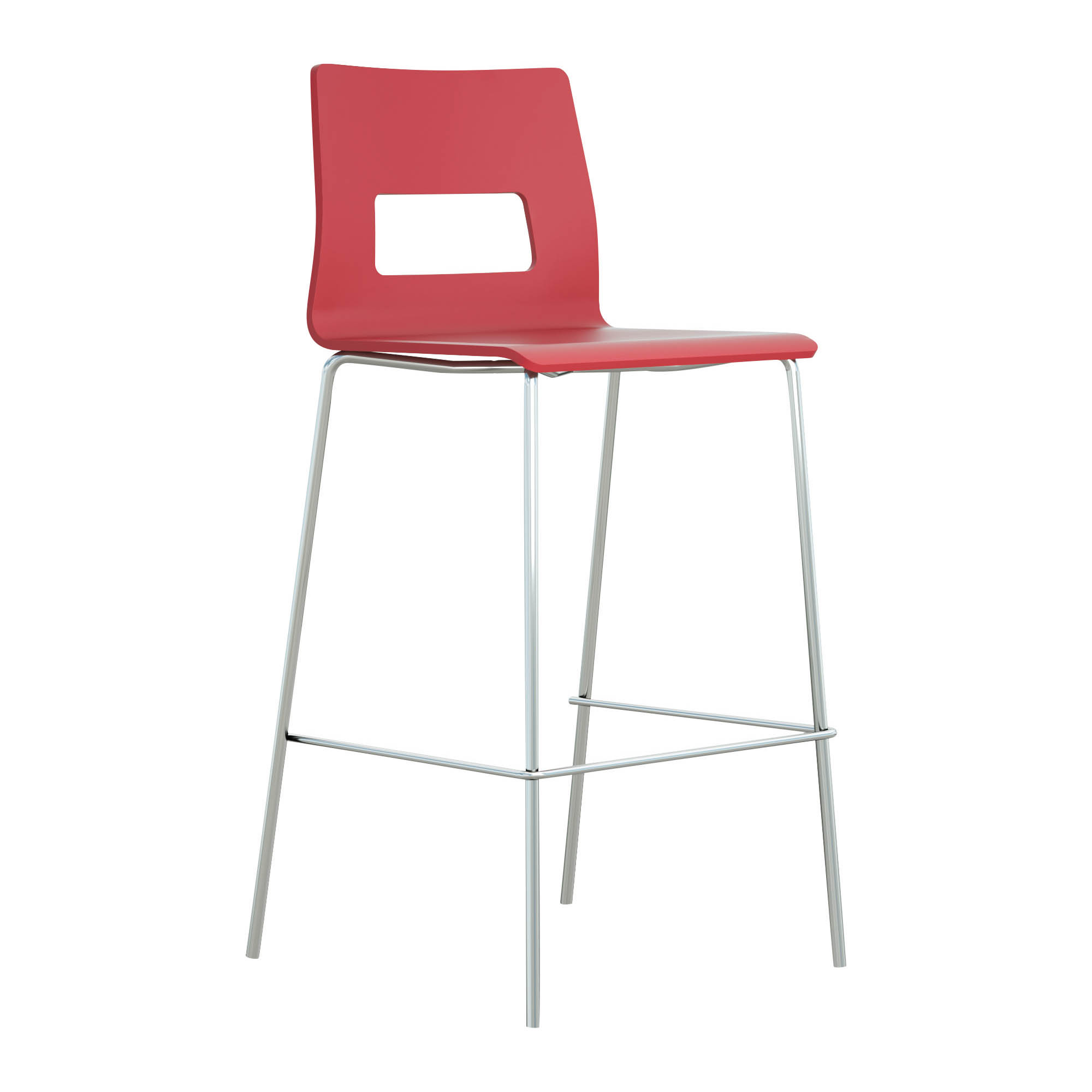 Detailled descriptionMaterial: shell in beech plywood. Lacquered finish. Base with 4 chromed feet. Footrest. Anti-slip pads.Seat dimensions W 40 x D 37 x H 75 cm, backrest H 32 cm.Delivered assembled.