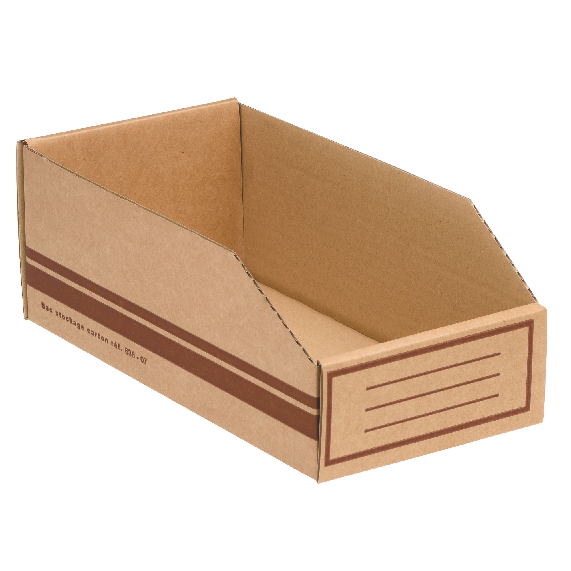 Detailled descriptionStrong: good resistant brown cardboard, double thickness (front and back). Direct access to the content. Label holder. Flat delivered, easy to install. Dimensions: H 11 x W 30 x D 15 cm. Capacity: 4,9 l.