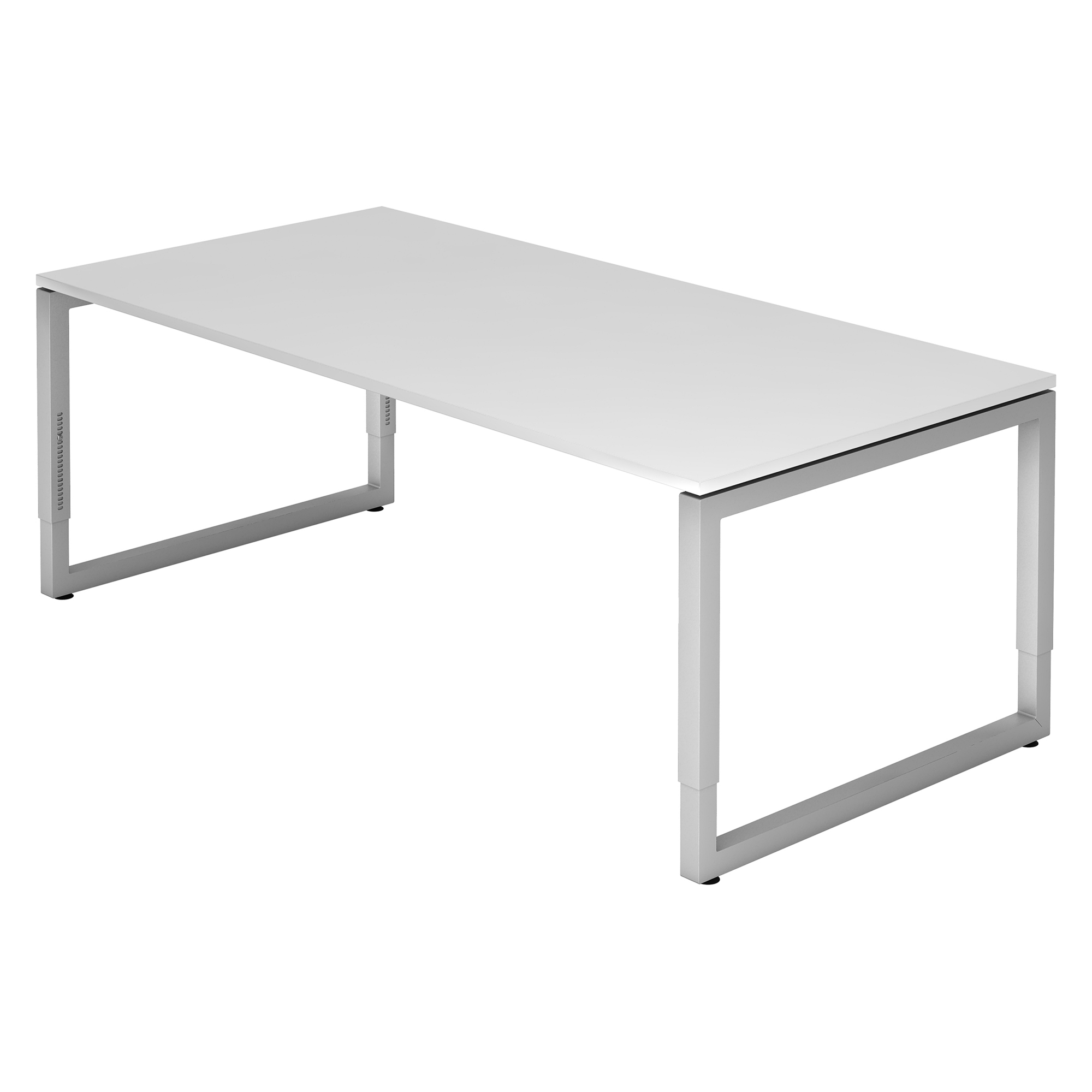 Width of top 200 cm, depth 100 cm. Thickness of table top: 2,5 cm. With rounded plastic border of 2 mm. Plate in chipboared with laminated covering, in accordance with DIN 68765. Height table: 65-86 cm. The height is adaptable thanks to incisions of 1 cm. The undercarriage is extremely solid. Loose table top