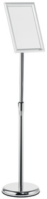 Detailled descriptionCadre pivotant, angle de lecure réglable, film de protectionrésistant aux UV, socle rond, réglable en hauteur de 770 mmà max. 1.205 mm au format portrait, arrière résistant auxchocs, en polystyrène, coins à coupe d'onglets