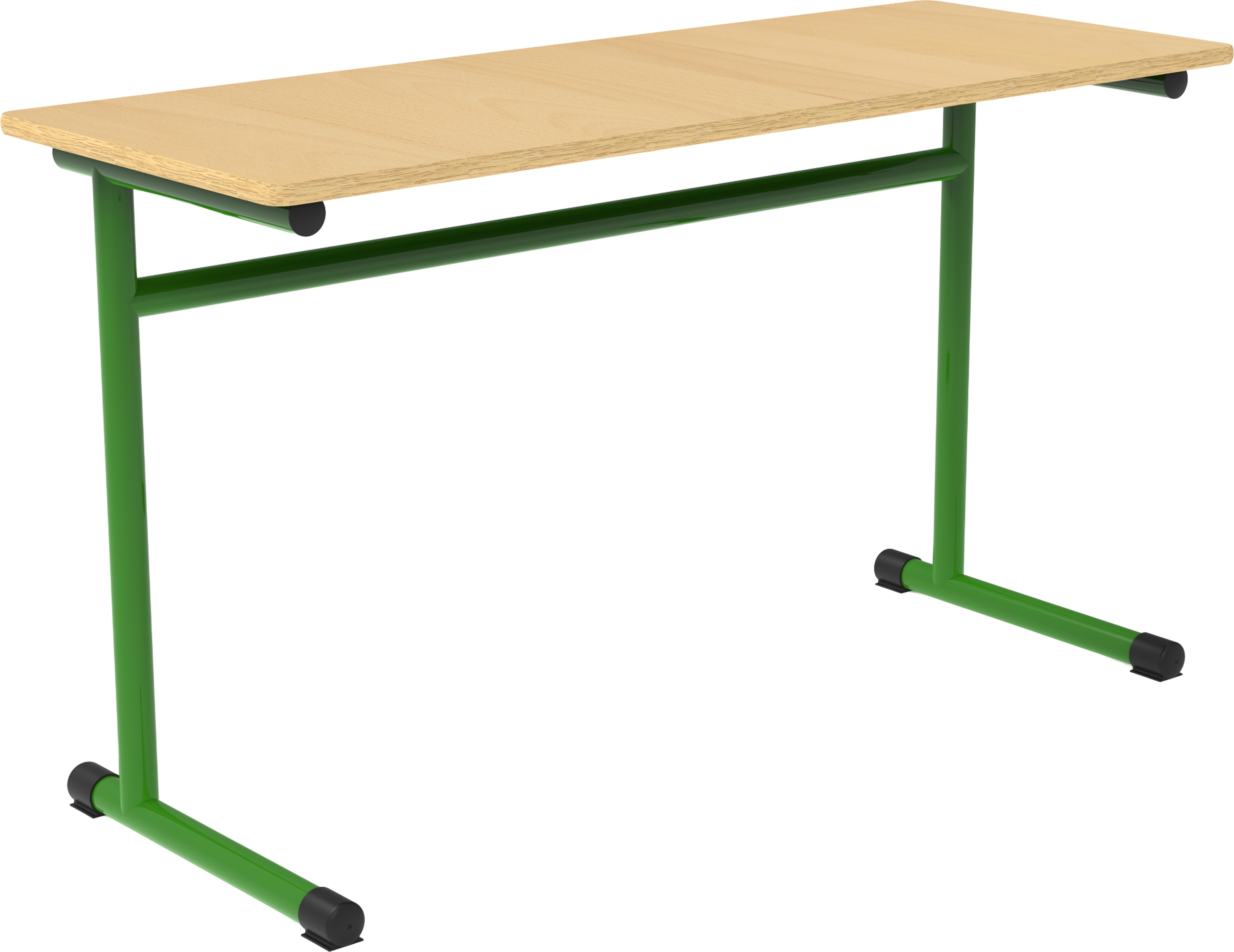 Table T4 biplace avec deux crochets porte cartable soudé. Chants adoucis en hêtre massif vernis naturel appliqué sous stratifié. Plateau réalisé en aggloméré recouvert de stratifié pour une épaisseur totale de 20 mm. Structure portante en tubulaire métallique diam. 40 mm. H 64 cm