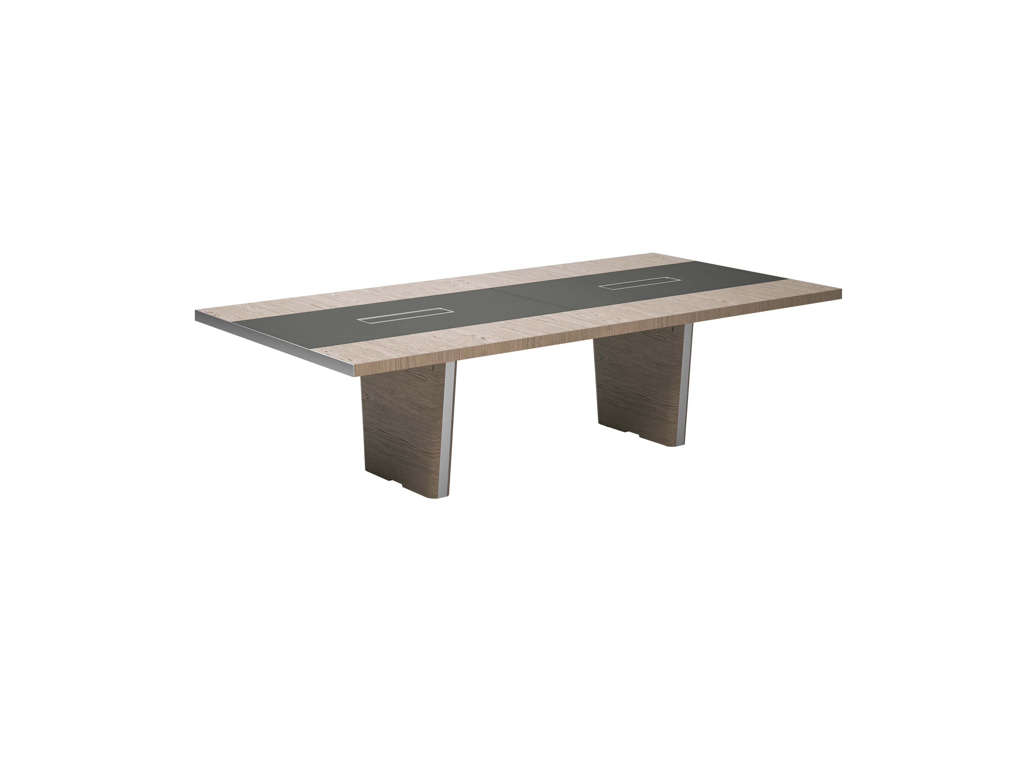 Avec son esthétique contemporaine, grâce notamment à son insert en cuir cousu à la main, cette table convient parfaitement aux salles de réunion destinées à représenter la société en transmettant un style managérial cosmopolite.