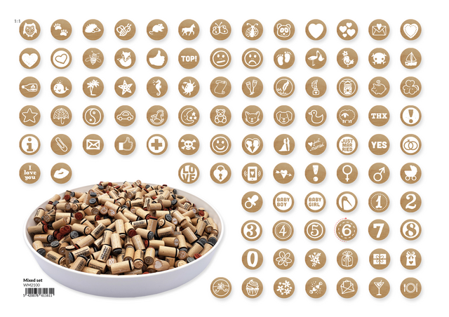 Detailled description* Ce présentoir Mini Woodies contient pas moins de 500 petits tampons. * 100 motifs différents disponibles.