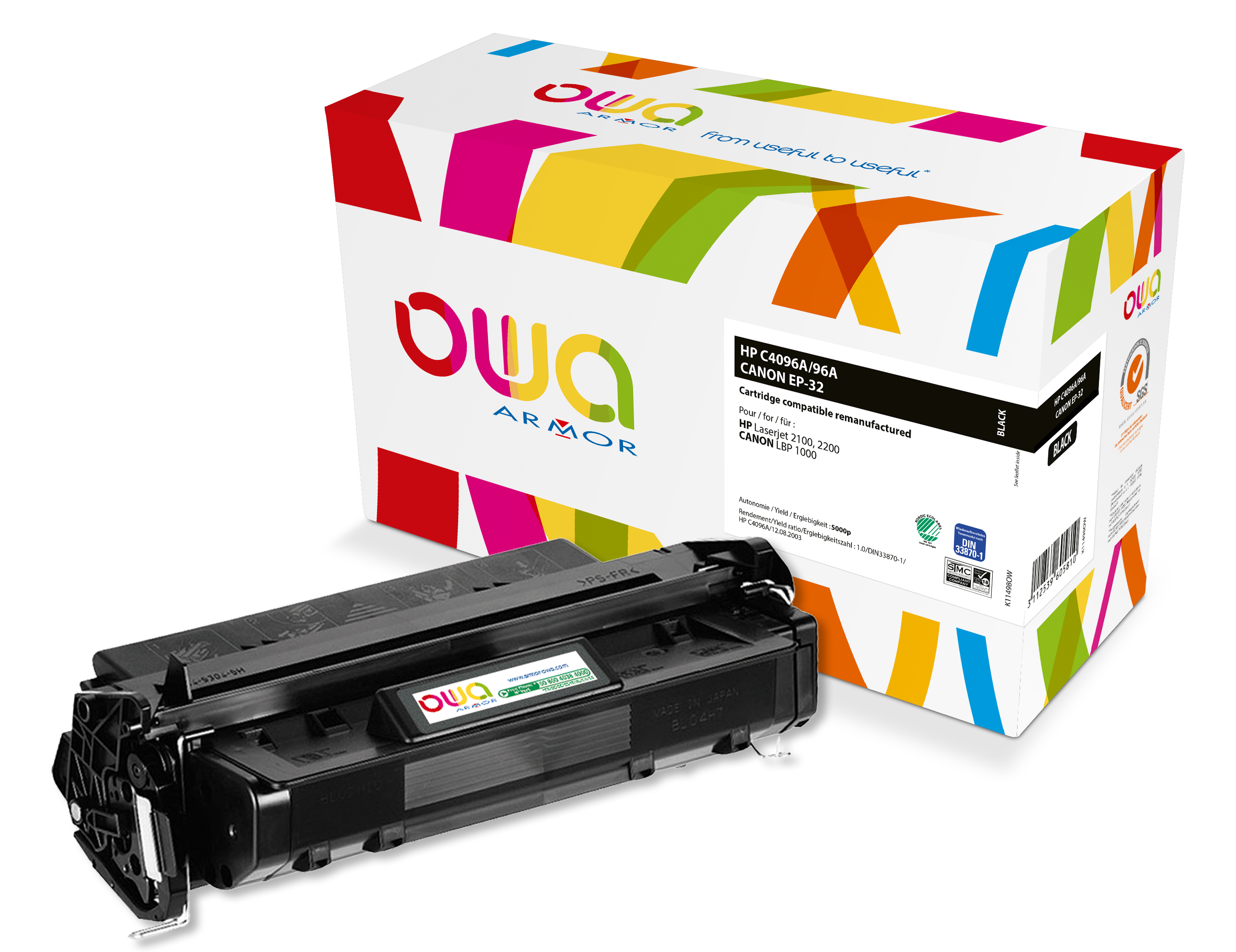 Other cartridges with the same compatibilitiesEN_Toner remanufacturé OWA - standard - Noir - pour HP 96A, CANON EP-32from€69.95 ex VAT