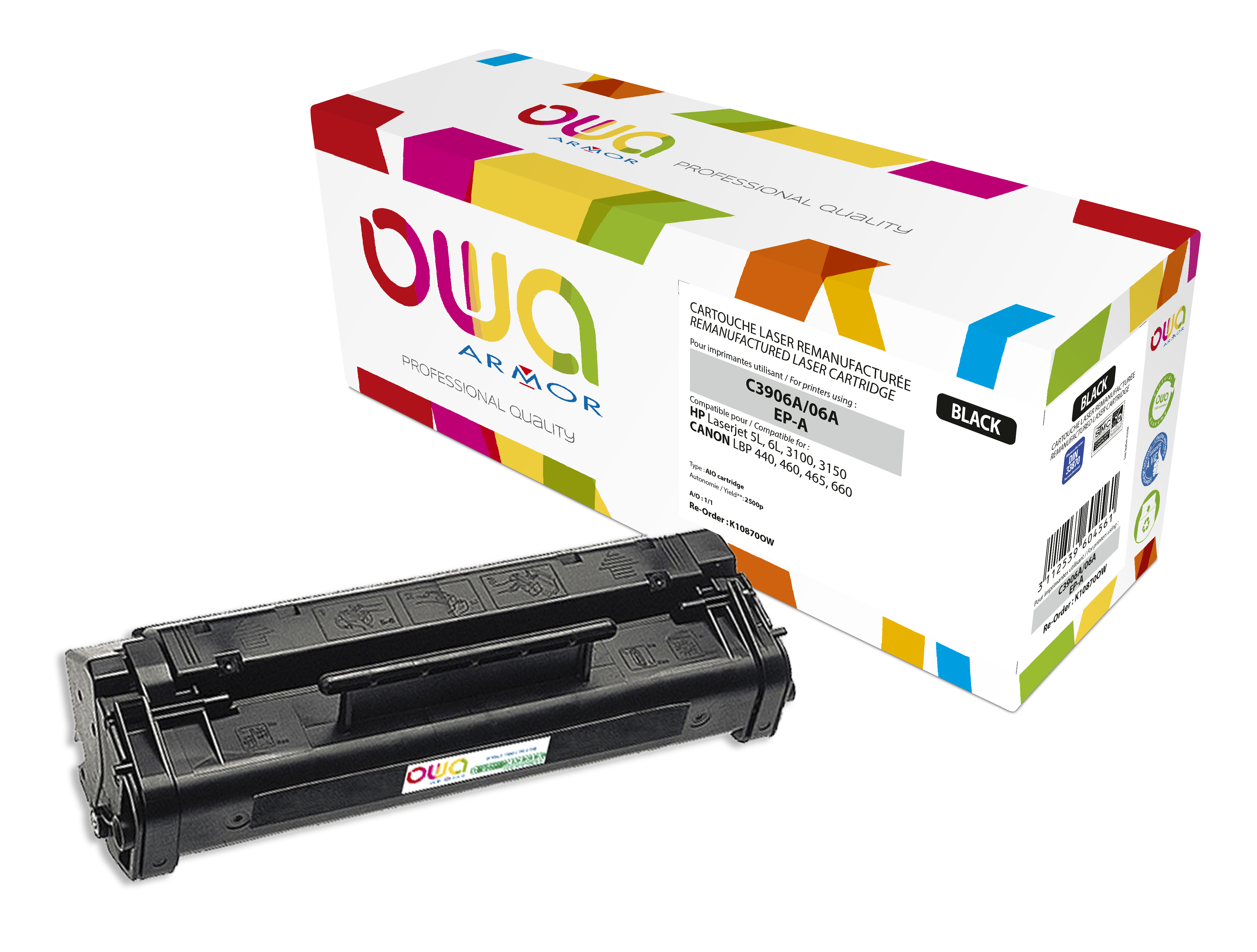 Other cartridges with the same compatibilitiesEN_Toner remanufacturé OWA - standard - Noir - pour HP C3906A, CANON EP-Afrom€53.95 ex VAT