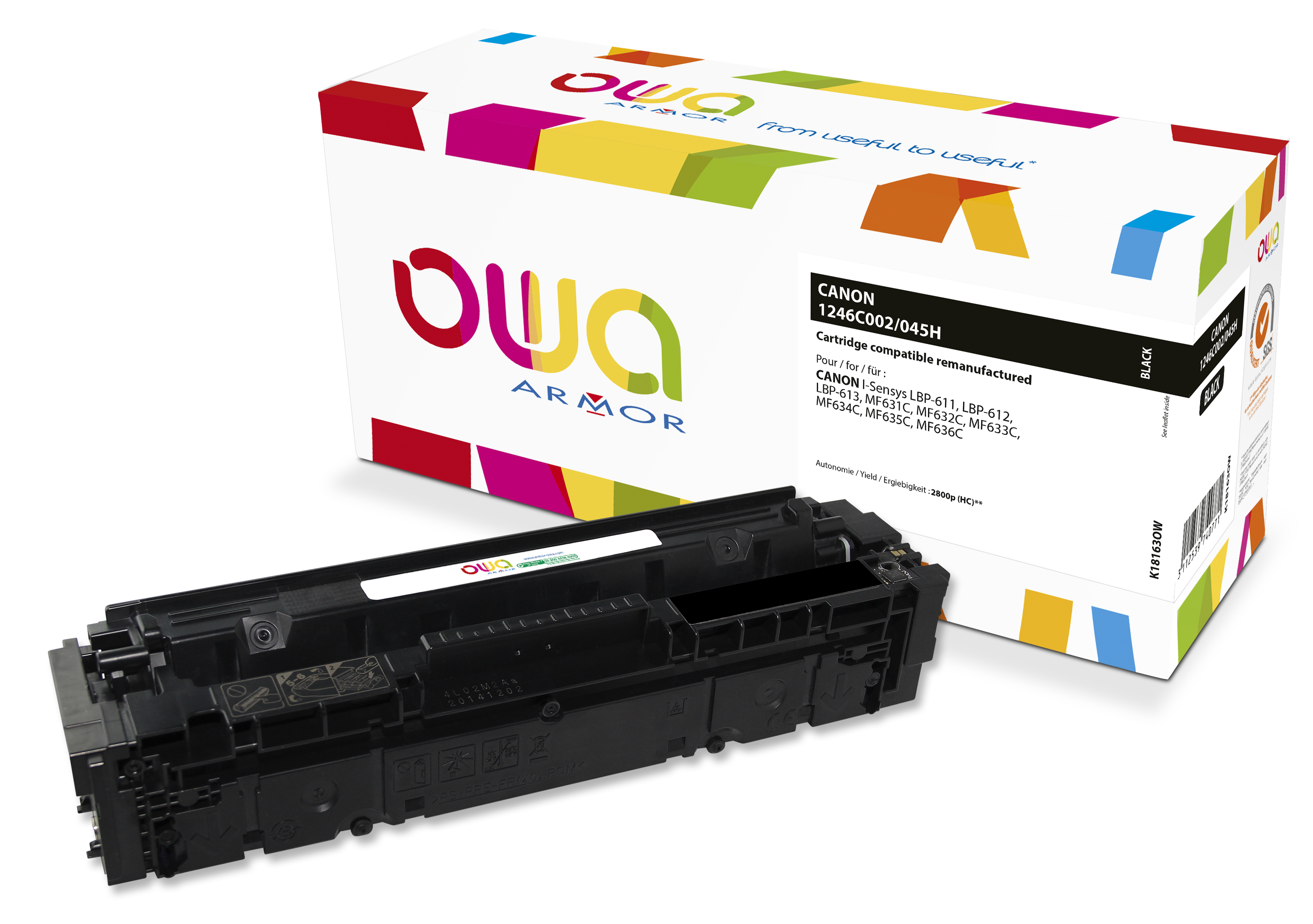 Other cartridges with the same compatibilitiesToner remanufacturé OWA - standard - pour CANON 045from€57.95 ex VATEN_Toner remanufacturé OWA - haute capacité - Noir - pour CANON 045Hfrom€72.50 ex VATToner Canon 045 black for laser printer from€89 ex VATToner Canon 045 separate colors for laser printer 3 reviewsfrom€97 ex VATToner Canon 045H high capacity black for laser printer 11 reviewsfrom€116 ex VATToner Canon 045H high capacity separate colors for laser printer 1 review€134 ex VAT€101 ex VATPromo -24%