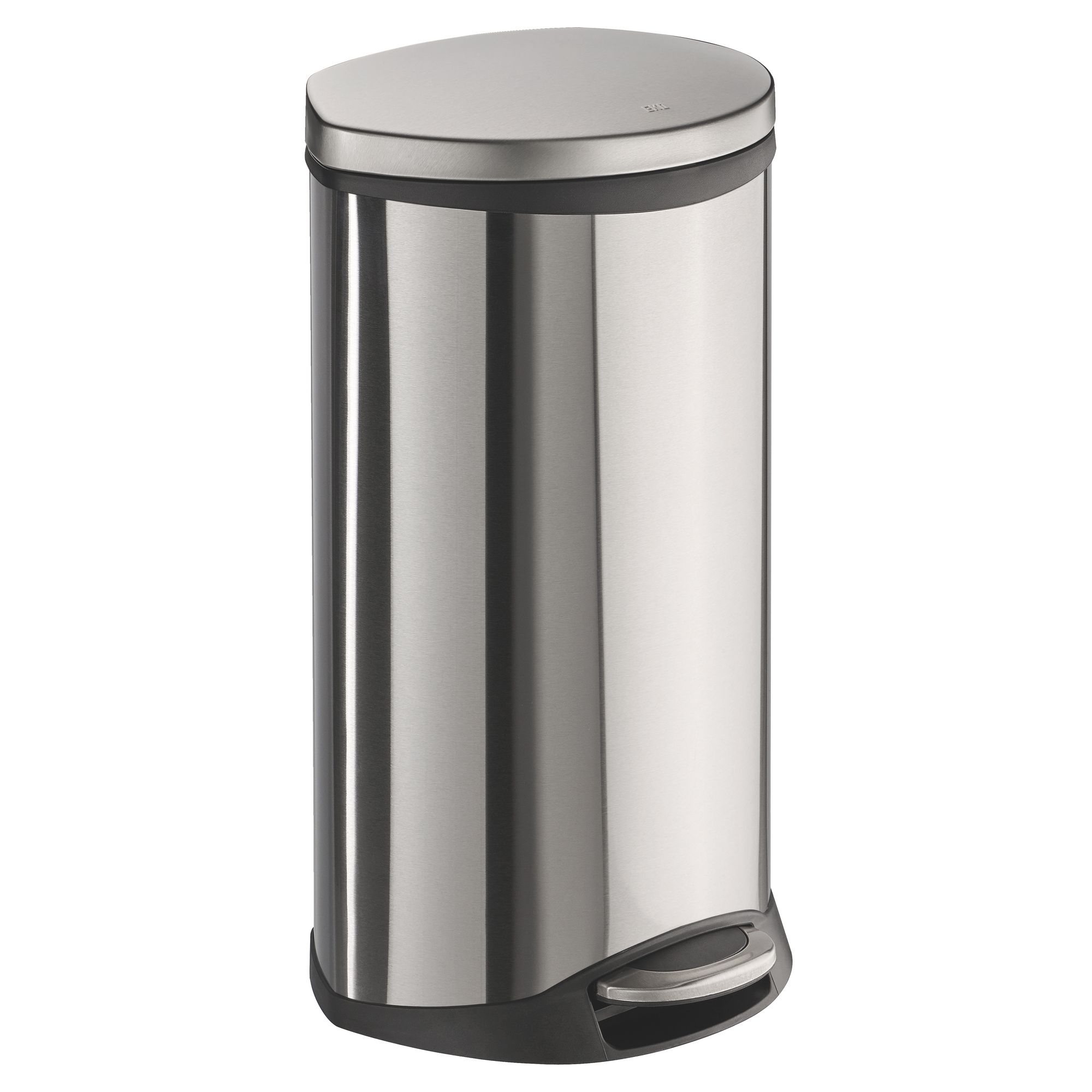 Detailled descriptionBin with pedal in a shell form. Equipped with a "soft closing" lid and a plastic liner.Antifingerprint finishing. In matt stainless steel. Capacity 30 L.