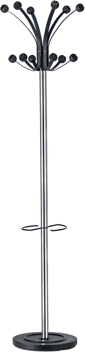 De plus, l'Unilux Hakea n'est pas uniquement dédié aux manteaux. Il est astucieusement équipé d'un porte-parapluie qui peut accueillir jusqu'à six parapluies simultanément. Un égouttoir est également intégré pour gérer efficacement l'eau résiduelle, préservant ainsi la propreté de votre espace de travail.