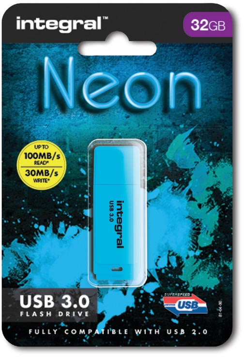 Adoptez la Clé USB 3.0 Neon 32Go Bleue INFD32GBNEONB3.0 d'Integral et profitez de la parfaite alliance entre performance, praticité et design.