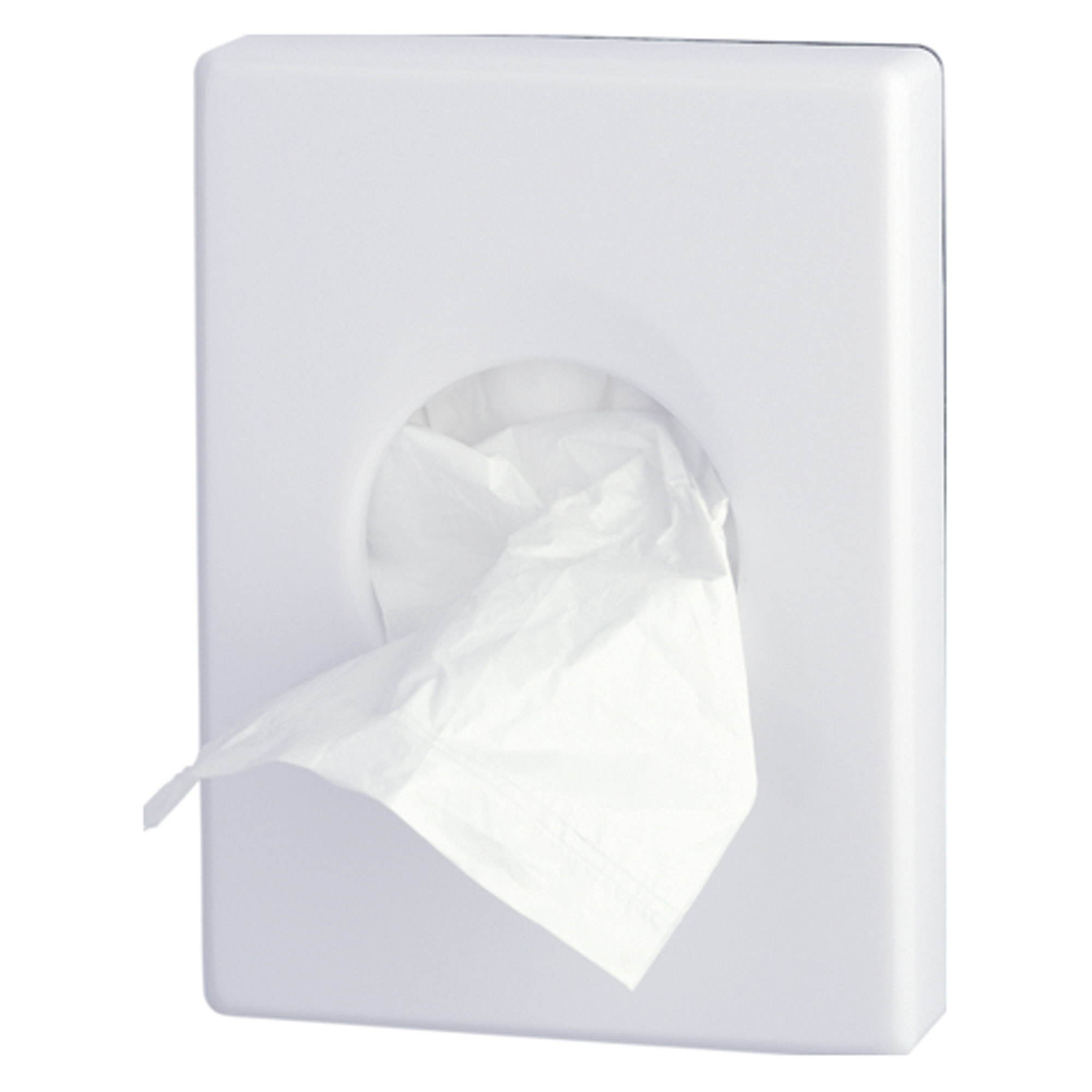 Detailled descriptionInstall this equipment in your toilets to facilitate the distribution of hygienic bags for feminine protection.Its design in shiny white ABS plastic makes it discreet and reliable.This dispenser is to be fixed on the wall with the provided screws.Delivered empty.Dimensions: L 9.8 x W 2.5 x H 13.8 cm.