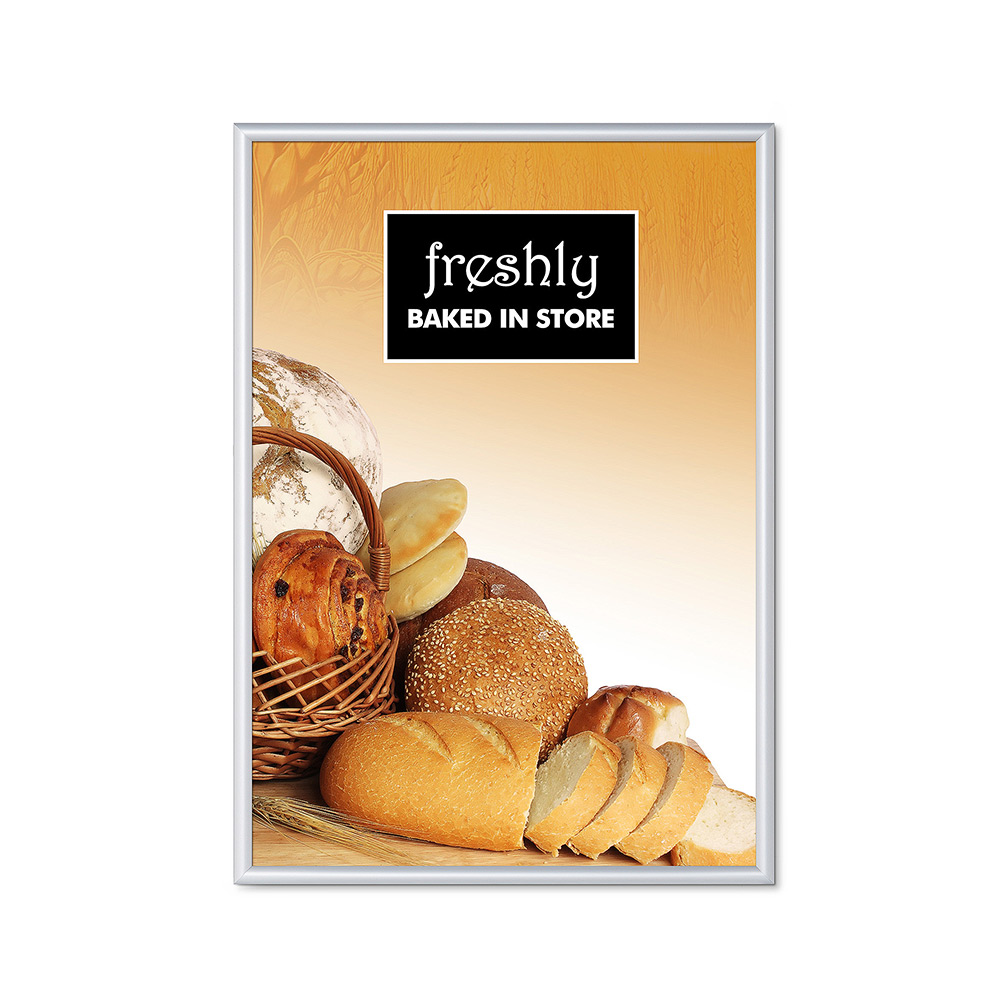 Showcase your poster securely and visibly with the 25 mm Fireproof Snap Frame. This premium aluminum frame comes with a B1 fire safety certification. Its snap frame design allows you to change posters effortlessly without removing the frame from the wall. Available with either square or rounded corners, this safe snap frame features the best-selling profile width of 25 mm. Ideal for use in schools, hospitality venues, public buildings, and government offices.