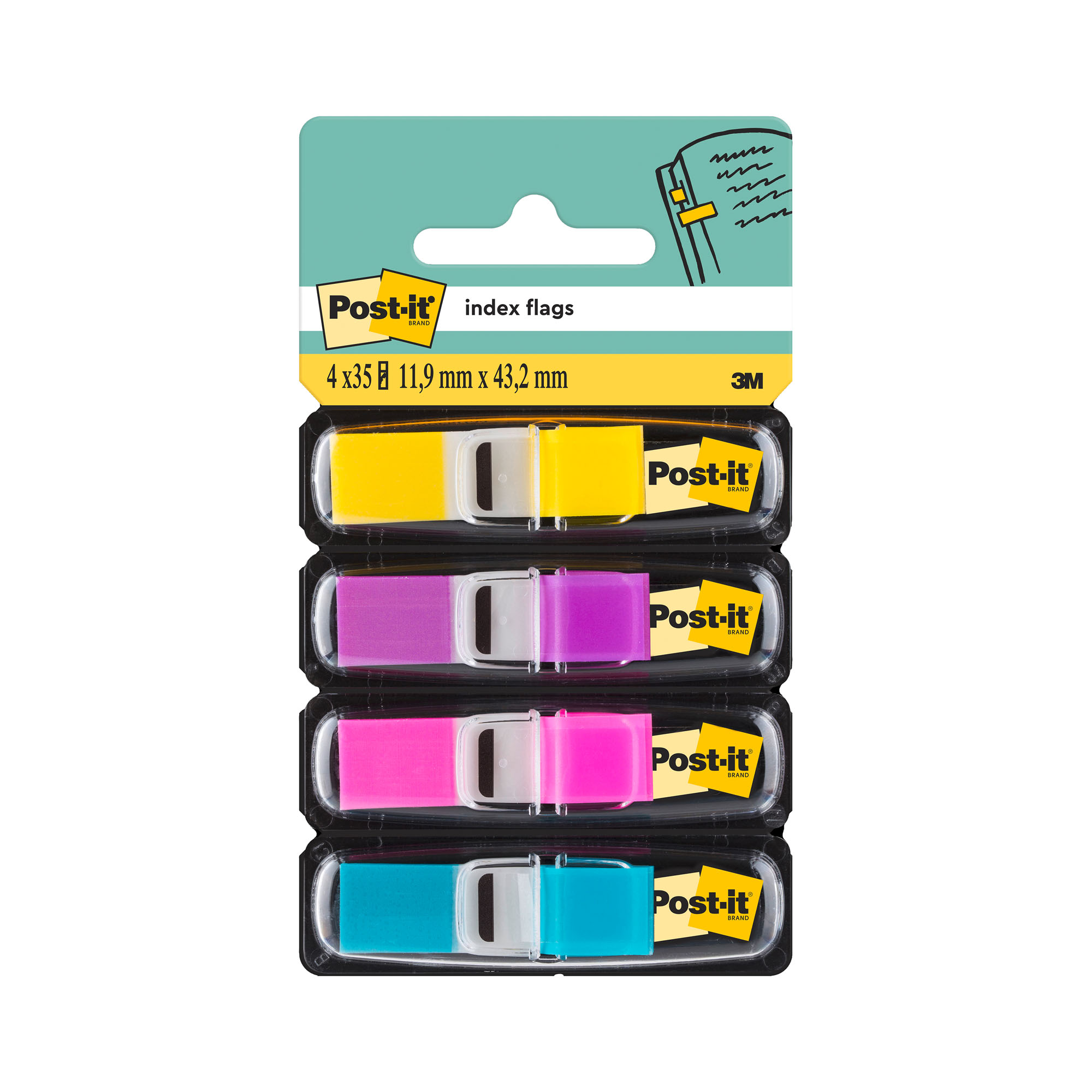 Bladwijzers met een doorzichtig klevend deel en een gekleurd beschrijfbaar deel.1 zijde transparant en herkleefbaar1 beschrijfbare, gekleurde zijde1) breedte 12,7 mm: - set van 4 verdelers van 35 bladwijzers4 klassieke geassorteerde kleuren (rood-blauw-groen-geel)4 geassorteerde levendige kleuren (geel-violet-roze-blauw)2) breedte 25,5 mm: 50 bladwijzersverkrijgbaar in rood-groen-geel-fel roze-fel blauw-blauw-oranje-violet-fel groen3) geassorteerd 4 kleuren rood-geel-groen-blauwmemoblok, index en herplaatsbare notes, post-it, memorystick.