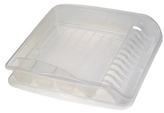 ProductinformatieTransparant, met bestekhouder en verwijderbaar dienblad, van PP,afmetingen: (L)395 x (D)395 x (H)80 mm.