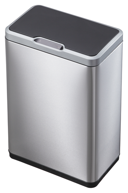 * De Mirage Sensor is een stijlvolle afvalbak voor afvalscheiding van geborsteld RVS voorzien van fingerprint proof coating en 2 kunststof binnenemmers (2x 20 liter). * Het sensormechanisme voorzien van touch switch zorgt ervoor dat de afvalbak zowel d.m.v. een sensor als via de touch knoppen te openen en sluiten is. * Hygiënisch in gebruik. * Het kunststof deksel sluit geruisloos. * Door het afneembare deksel is de afvalzak eenvoudig te wisselen. * Afmeting van de afvalbak: hoogte 655mm, breedte 460mm, diepte 270mm. * Werkt op 6 AA batterijen (niet inbegrepen).