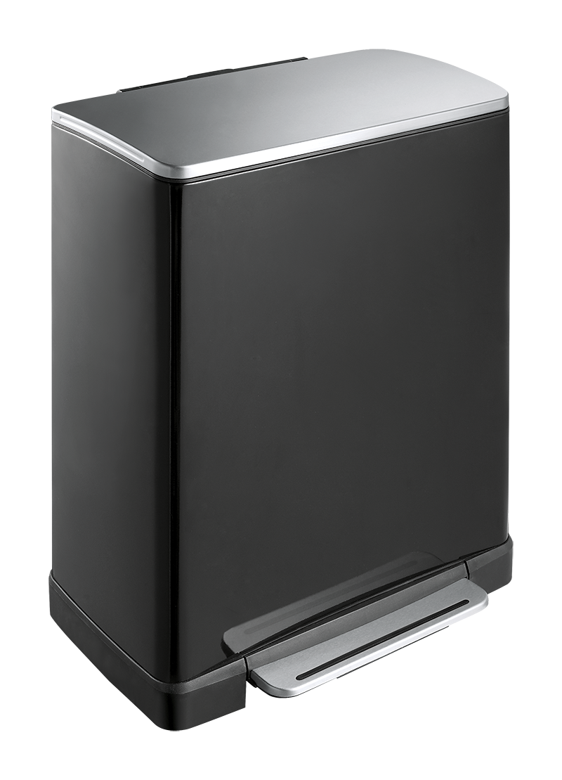 Rechthoekige en zeer esthetische pedaalemmer. Uitgerust met een extra grote pedaal, een voering van synthetisch materiaal, stille sluiting en een 'stay-open' functie om het deksel in de open positie te houden. Plaats in het deksel voor een koolstoffilter tegen geuren. Afwerking tegen vingerafdrukken.