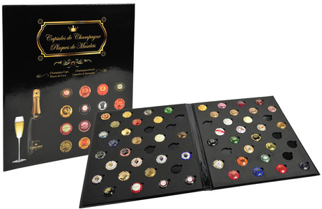 Verzamelalbum voor champagnecapsules met omslag in bedrukt en glanzend geplastificeerd karton.