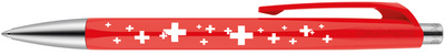 ProductinformatieRode behuizing met wit Zwitsers kruis, lijnbreedte: M,lijnkleur: blauw, zeshoekige behuizing van stevige en resistente synthetische hars,intrekbaar, navulbaar met SWISSRIDE-vulling.