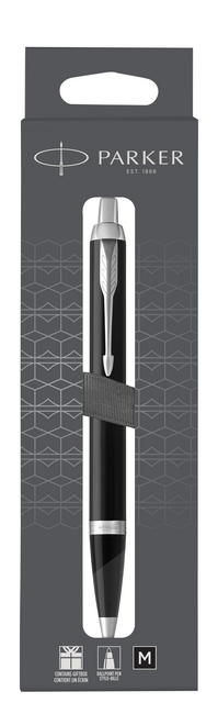 De Parker IM Matte Black CT is elegant, gepolijst en professioneel, een ideale partner met onbegrensde mogelijkheden De gladde, conische vorm combineert naadloos met innovatieve ontwerpen om een opvallend statement te maken De verchroomde afwerking van de pen past perfect bij de moderne, matzwart gelakte behuizing, waardoor deze pen het perfecte schrijfinstrument is voor studenten en professionals De intrekbare balpenpunt en Quinkflow-inkt zijn voorzien van een tevredenstellende klik en zorgen voor een uitzonderlijk soepele en betrouwbare schrijfervaring Te gebruiken met Quink balpen- en gelvullingen Elk detail is verfijnd om een schrijfervaring te bieden die tegelijkertijd betrouwbaar is en trouw aan meer dan 125 jaar Parker-merkerfgoed De pen wordt geleverd in een geschenkverpakking.