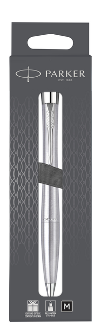 * De opvallende en dynamische Parker Urban Twist-balpennen hebben een gedurfde moderne look die de aandacht durft te trekken. * Met zijn gebogen ontwerp en verbeterd gewicht geniet u van een perfect gebalanceerde schrijfervaring die uw stijl complementeert. * Deze Parker-balpen heeft een afwerking van geborsteld roestvrij staal, geaccentueerd met opvallende chromen rand en dop. * De balpenpunt en Quinkflow-inkt worden met een draaibeweging ingetrokken en zorgen voor een uitzonderlijk soepele en betrouwbare schrijfervaring. * De Urban Twist balpennen zijn ontworpen met vloeiende rondingen en geven vertrouwen achter elk woord. * De pen wordt geleverd in een Parker-geschenkverpakking.