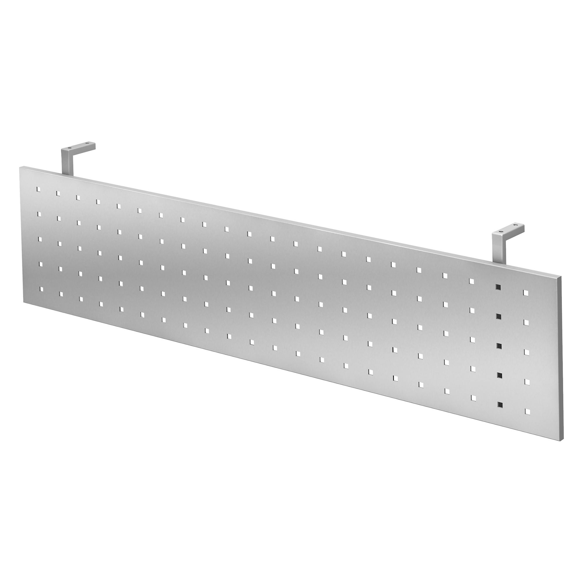 ProductinformatieRuimte tussen de onderkant van het tafelblad ca. 5 cm. Hoogte van het paneel-scherm 35 cm. Metaal, geperforeerd, geglazuurd in de oven. Mogelijke installatie bij de bureaus met voorgeboorde gaten. Nuttige breedte 148,2 cm.
