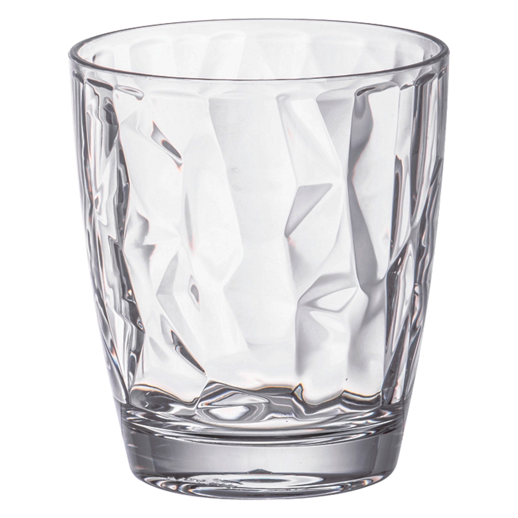 Het Any-bekerglas heeft de uitstraling van glas maar is gemaakt van polycarbonaat, een onbreekbaar materiaal.