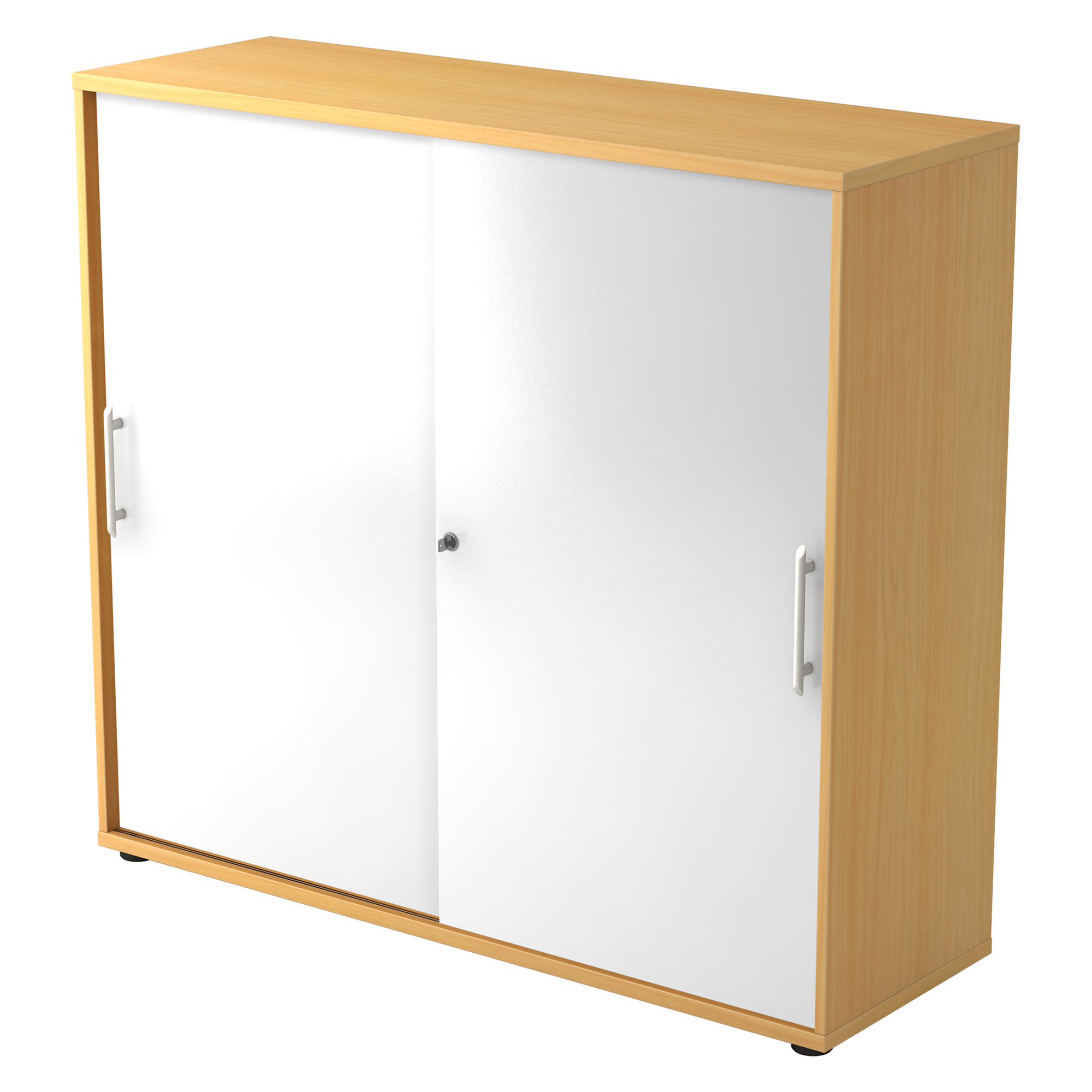 Structuur : spaanplaat bekleed met melaminelaag (DIN 68765 - Klasse E1). Voorzijde met 2 mm dikke beschermstrook in ABS, afgerond. Dikte zijkant: 16 mm, dikte boven- en onderkant: 22 mm. Rug: 3 mm (in groeven vastgeschroefd) - steeds zilverkleurig.Sluiting: loopgedeelte "Slide Line" onderaan op 2 wieltjes per deur in een geleider (met hoogteregeling) - bovenaan met 2 blokjes per deur in een geleider.Uitrusting: legplanken dikte: 16 mm, voorzijde met 2 mm dikke beschermstrook in ABS, afgerond. Hoogte is verstelbaar per 32 mm.Sokkel: 5 ronde pootjes (zwart - H 20 mm), bovenaan via de bodem in hoogte verstelbaar.Slot: drukcilinderslot, standaard sluiten beide deuren tegelijk (op aanvraag kan voor elke deur apart een slot bekomen worden).Handvat: zilverkleurig in kunststof, 128 mm. Draagvermogen: 25 kg/legplank.