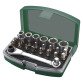 ProductinformatieIn een kunststof koffer, bits van speciaal S2 staal, doppen van CV staal, kleur: groen / zilver, afmetingen: (B)110 x (D)72 x (H)40 mm.