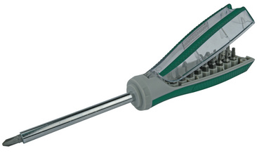 ProductinformatieMet opbergruimte voor bits in het schroevendraaierhandvat, afmetingen: (B)284 x (D)50 x (H)44 mm, kleur: zilver.