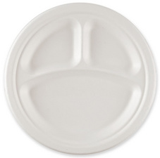 Productinformatie3 compartimenten, gemaakt van suikerrietvezels, biologisch afbreekbaar,composteerbaar volgens EN 13432, bestand tegen olie, vet enhitte, geschikt voor traditionele oven en magnetron,inhoud: 50 stuks, stapelbaar.