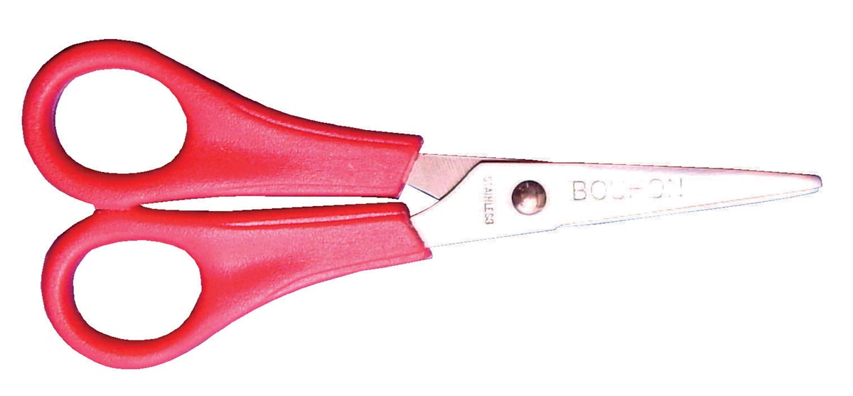 Bouhon schaar, ft 14 cm, rechts, scherpe punt, RVS, rood