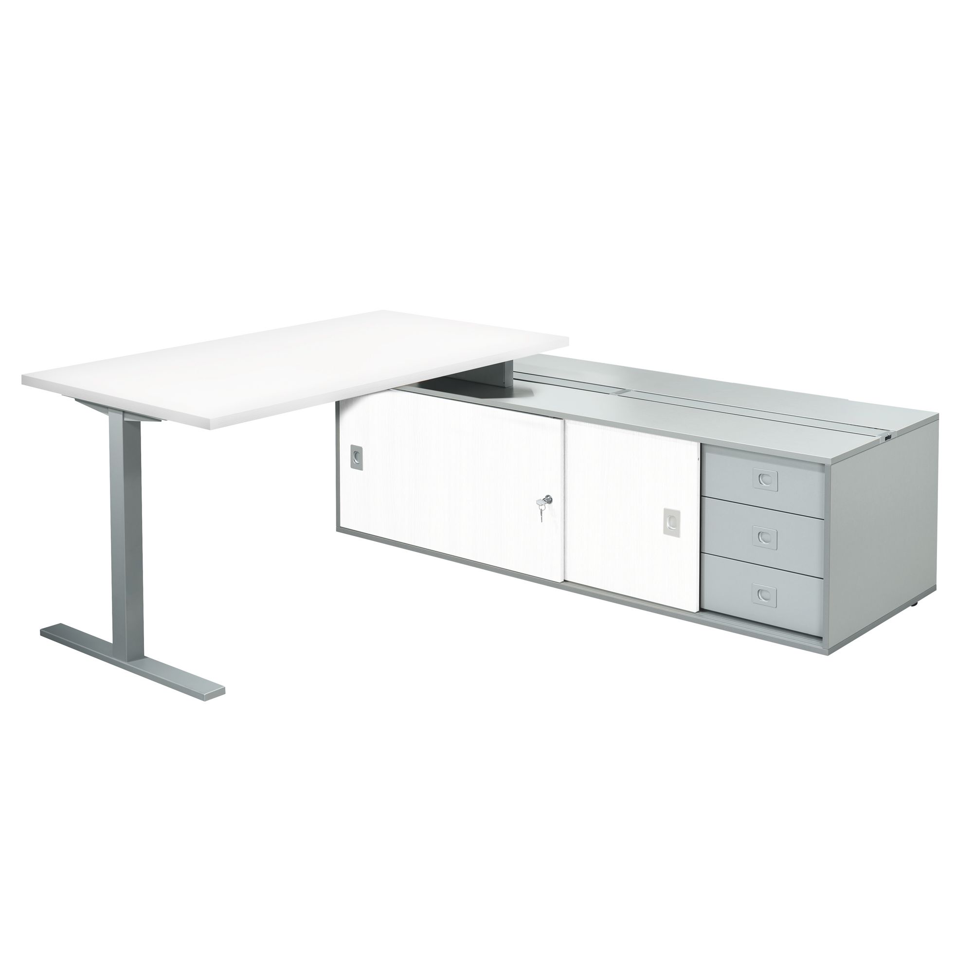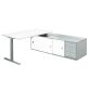 Bijzetkast: links of rechts te plaatsen bij de montage. Gemelamineerde spaanplaat met aluminium afwerking. 2 schuifdeuren met slot aan elke kant (2 sleutels meegeleerd). Centrale scheidingswand die 2 compartimenten vormt met elk een regelbare legplank. Nuttige afmetingen van een vak H 49 x B 88 x D 57 cm. Kabeldoorgang geïntegreerd in de bijzetkast, met verwijderbare afdekking en goot voor meerdere kabels. Afmetingen H 55,5 x B 181,5 x D 66 cm.