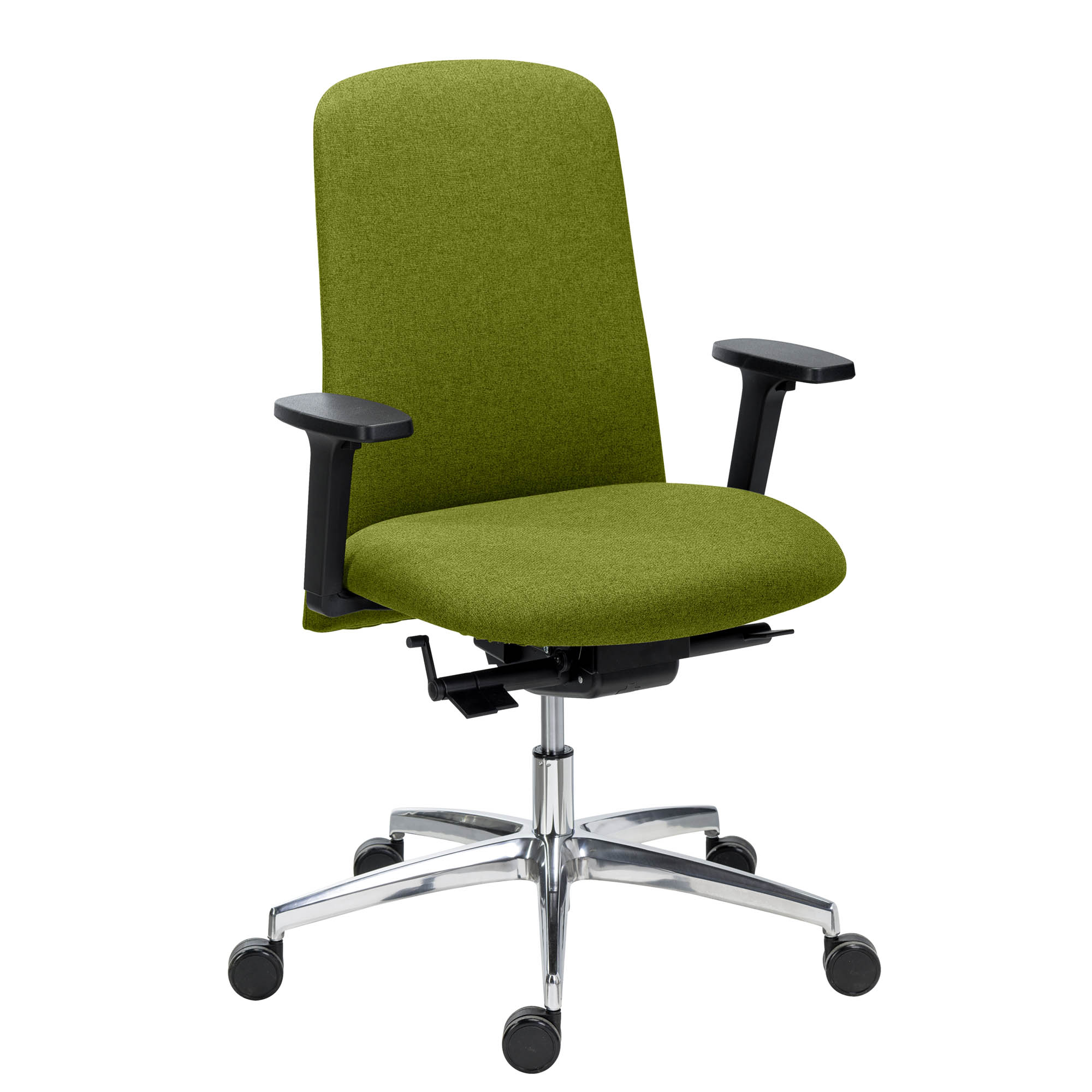 Materiaal: zitting en rugleuning van brandwerende Trevira-stof M1. Gewaxt aluminium onderstel. 3D-armleuningen van zwart nylon.