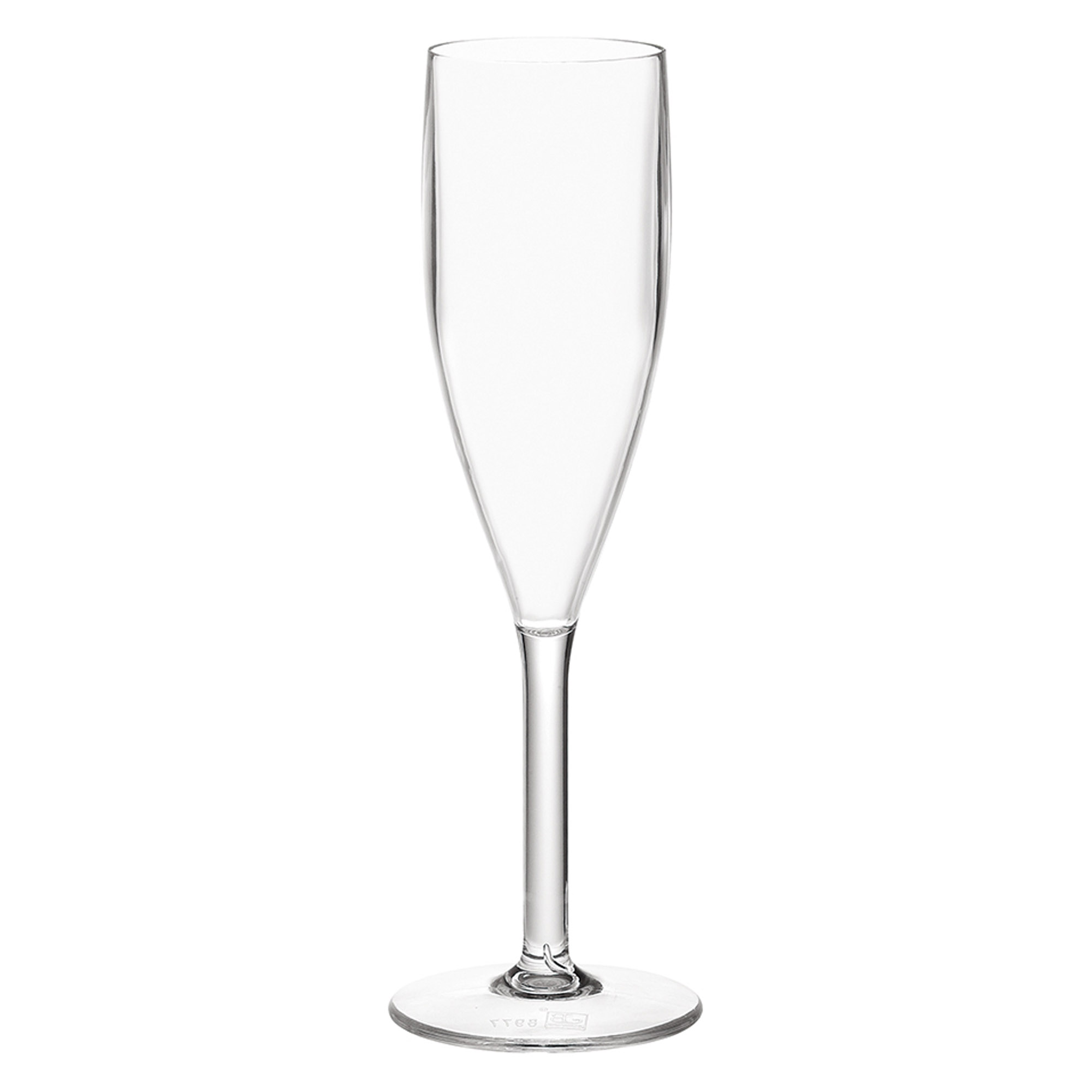 Het Elise-champagneglas heeft de uitstraling van glas maar is gemaakt van polycarbonaat, een onbreekbaar materiaal.