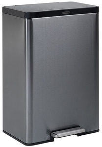 ProductinformatieAntraciet, roestvrij staal, met pedaal aan de grotezijde, rechthoekig, langzame sluiting van de deksel, degeïntegreerde LinerLock-technologie bevestigt de zak aan de verzamelaar,afmetingen: (B)485 x (D)370 x (H)693 mm