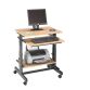 Totale afmetingen 70 x 50 cm. Blad voor scherm 70 x 50 cm (max. vermogen 50 kg). Uitschuifbare legplanken voor klavier, voor PC en printer. 4 wieltjes, 2 met remmen. Onderstel is elke 3 cm aanpasbaar in hoogte, tussen 64 en 91 cm. Epoxygelakt metaal, kleur antraciet. Bovenblad in gemelamineerde spaanplaat, dikte 19 mm. Kleur beuk of grijs. ABS-randen, schokbestendig, dikte 2 mm.